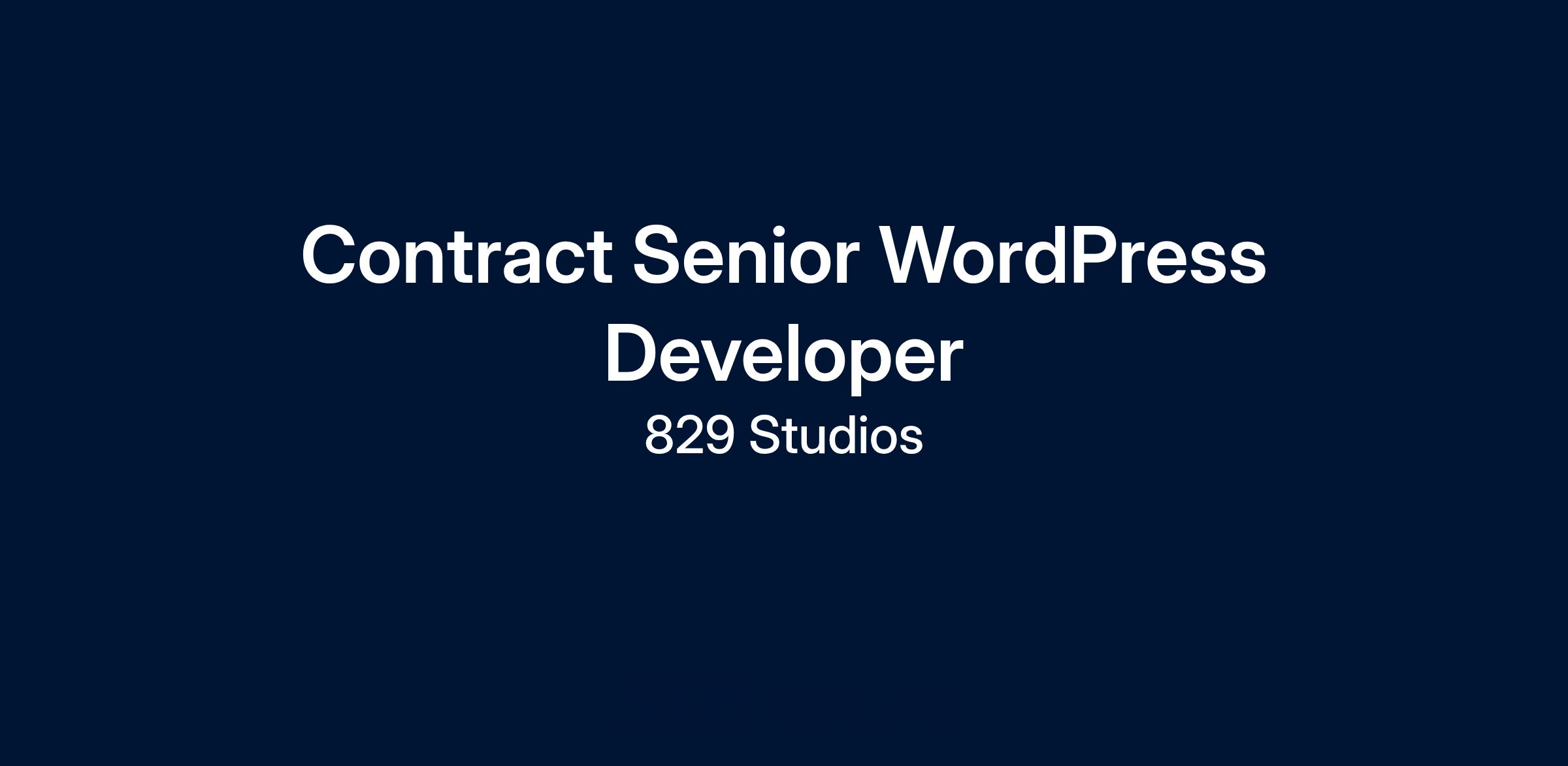 The Contract Senior WordPress Developer works closely with 829 Studiosβ client services, design, and project teams to architect, build, and maintain high-quality WordPress websites for a diverse range of clients. This role blends hands-on technical execution with strategic consultation, combining deep WordPress expertise with cross-disciplinary collaboration to deliver performant, accessible, and visually refined digital experiences.