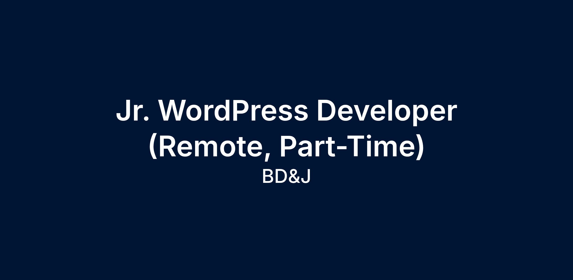 Junior WordPress Website Developer (Part-Time, Remote)