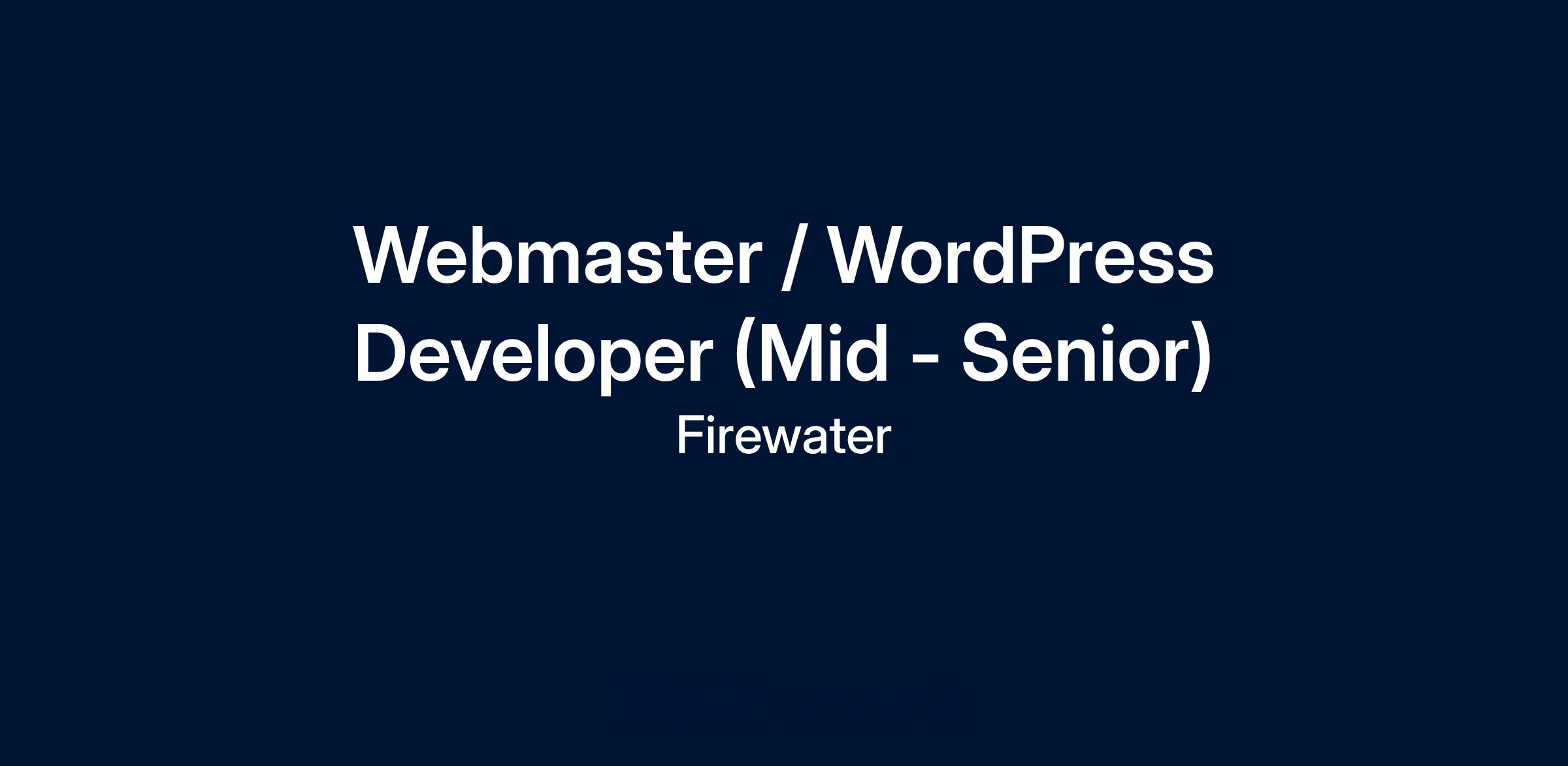 Firewater is looking for a webmaster/WordPress Developer extraordinaire <\/b>that has a keen eye for detail and a love for digital technologies. We are looking for someone who uses the internet for something other than drunken photos, relentless hashtags and trolling. If you are excited by digital marketing and the endless possibilities and dream about the perfect IA and UX<\/b>, read on:<\/span><\/span><\/span><\/span> Job responsibilities:<\/span><\/span><\/b><\/span><\/span> Experience in/knowledge of:<\/span><\/span><\/b>